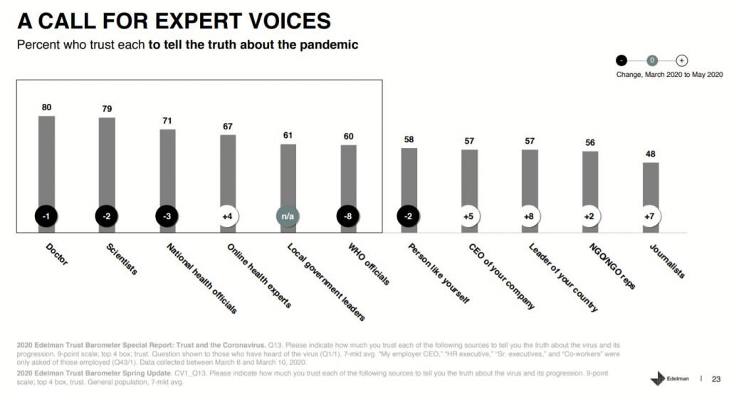 - 56 % font confiance aux ONG pour dire la vérité sur la pandémie