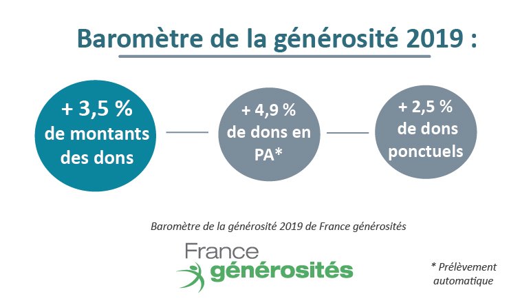 + 3,5 % de montants de dons en 2019 par rapport à 2018 ! Le montant global des dons de 2019 est donc revenu au niveau de 2016. […] Découvrez les chiffres clés du nouveau baromètre de la générosité des Français en 2019 !