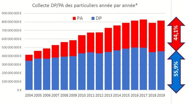 - Une collecte 2019 qui repart à la hausse mais qui ne rattrape pas le niveau de 2017
