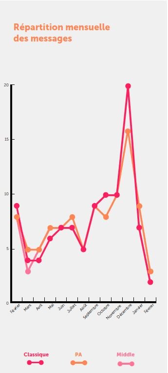L’étude montre que plus de messages autour des libéralités ont été adressés aux donateurs en PA, qu’aux middles.