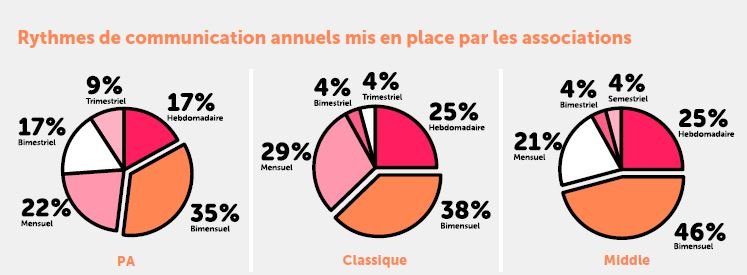 Le premier schéma extrait de l’étude nous montre précisément les différences de régularité de communication selon le type de dons.