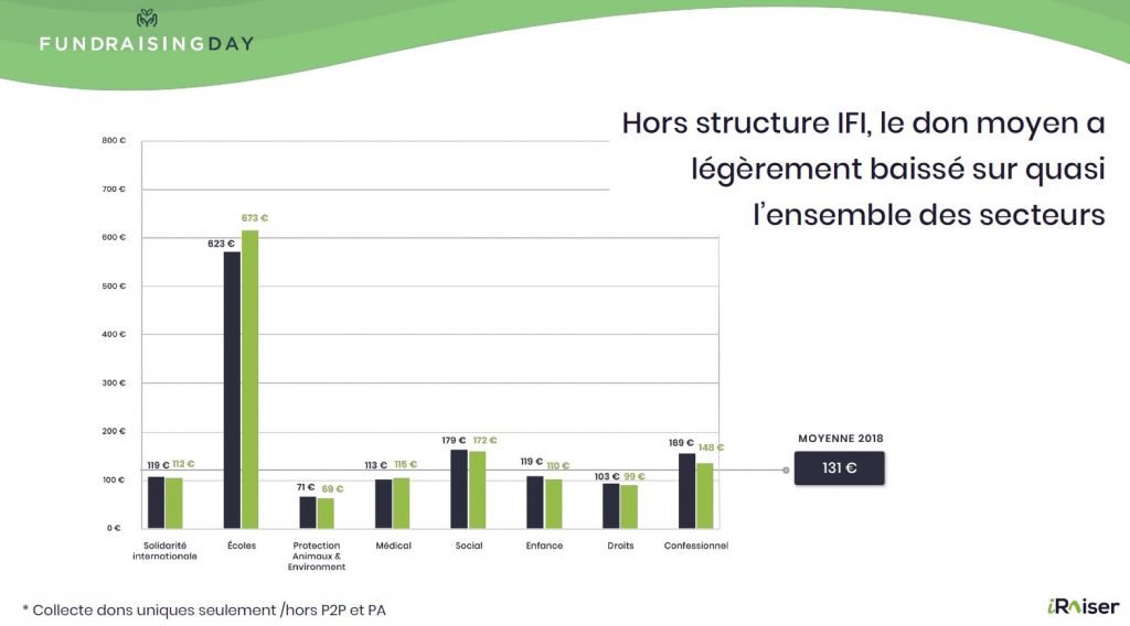 L’étude iRaiser montre également que les structures qui bénéficiaient de l‘ISF/IFI ont été les plus impactées par la baisse des dons en 2018 avec une perte de 6.1 millions d’euros (- 15 %).