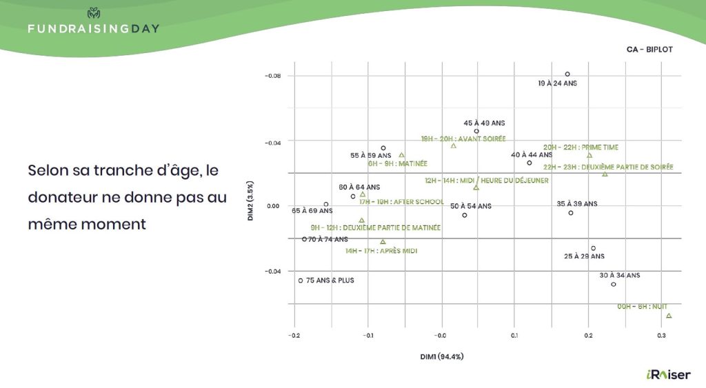 L’âge a quant à lui son importance sur l’horaire du don au sein de la journée du donateur, comme nous pouvons observer avec ce schéma.