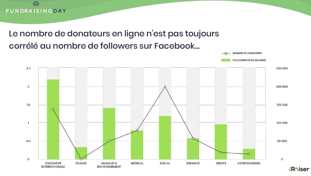 L’étude montre également une déconnexion entre le nombre de followers d’une organisation et le nombre de dons de cette structure, cela concernant une majorité de missions sociales.