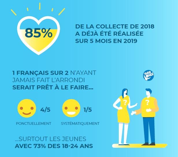 Selon l’étude, 29% des personnes interrogées se sont ainsi vues proposer la démarche en faisant leurs achats, et 2/3 d’entre eux ont accepté de donner par l’arrondi solidaire au profit d’une association ou d’une fondation, ce qui représente près de 10 millions de Français.